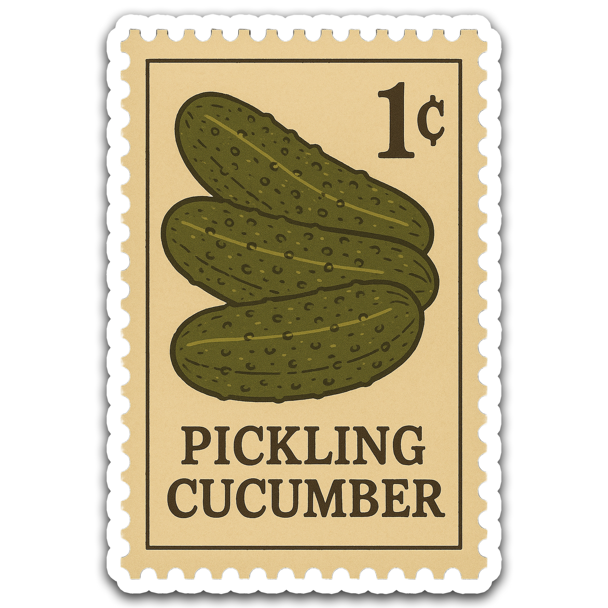 Get ready to dill with it! This adorable vintage pickling cucumbers stamp brings old-school garden charm to your creative projects. Featuring a whimsical retro design that celebrates classic kitchen gardening, it's perfect for labeling homemade preserves, decorating recipe cards, or jazzing up your gardening notes. Ideal for pickle enthusiasts, green thumbs, and sticker lovers alike. Add a crisp touch of nostalgia to everything you create!